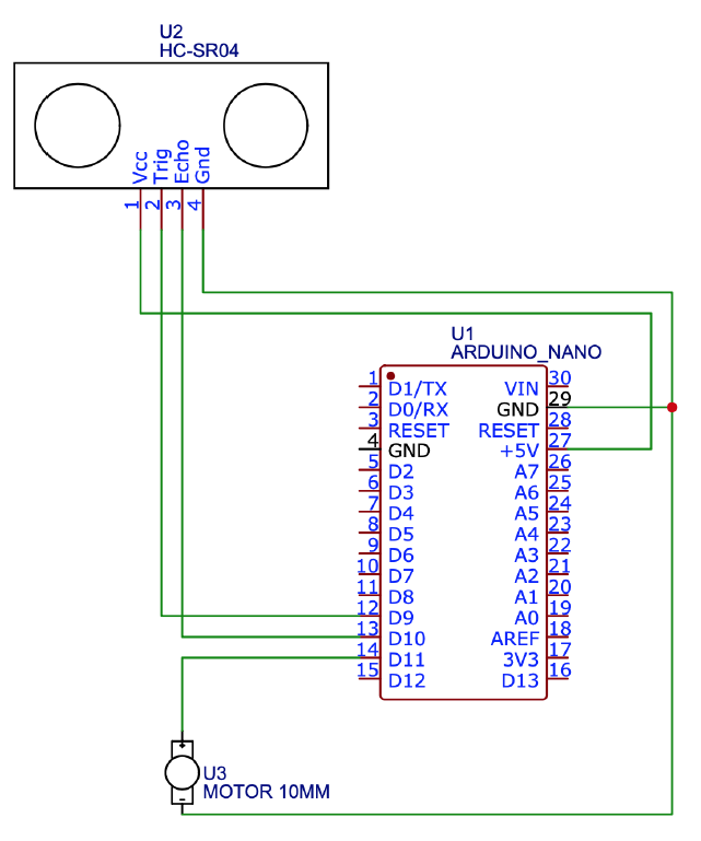 increases the intensity of the vibration motor to indicate the visually impaired person that some obstacle is in front of them. As the obstacle comes closer, the intensity of the vibration increases. The circuit design can be seen in the figure 1.